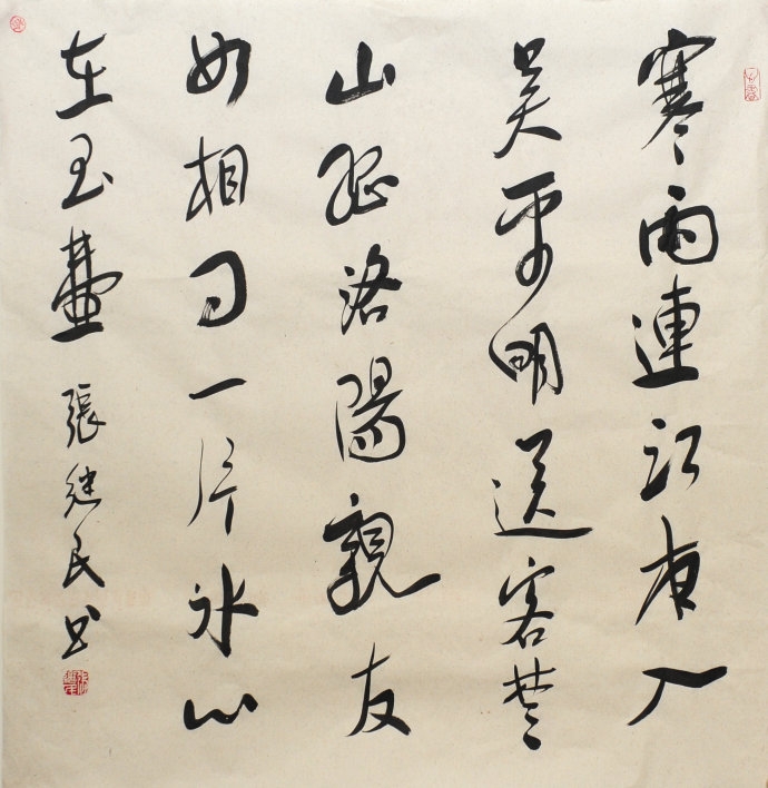 張繼民 字希夢(mèng),號(hào)希夢(mèng)堂主人,山東金鄉(xiāng)人,現(xiàn)為中國(guó)書(shū)法家協(xié)會(huì)會(huì)員,北京書(shū)畫(huà)院副院長(zhǎng),山東省書(shū)法家協(xié)會(huì)理事、濟(jì)寧市書(shū)法家協(xié)會(huì)副主席、金鄉(xiāng)縣書(shū)協(xié)、美協(xié)主席、魯西南書(shū)畫(huà)院院長(zhǎng)、中國(guó)書(shū)畫(huà)創(chuàng)作研究會(huì)秘書(shū)長(zhǎng)。 自幼酷愛(ài)書(shū)法,師承著名書(shū)法家魏?jiǎn)⒑笙壬P胁葑诜ǘ?、米芾,追求率真、淡雅、飄逸之趣。隸書(shū)習(xí)兩漢,于《張遷》頗為用功,書(shū)法線條極具厚重、大樸、凝重之感,藝術(shù)風(fēng)格日臻完美。1998年創(chuàng)辦魯西南書(shū)畫(huà)院,首任院長(zhǎng),獎(jiǎng)掖后進(jìn)不遺余力,畫(huà)院現(xiàn)擁有中國(guó)書(shū)協(xié)、美協(xié)會(huì)員16人,省級(jí)書(shū)協(xié)、美協(xié)會(huì)員28人,院士會(huì)員300余人。作品入選全國(guó)第八屆書(shū)法展、榮獲全國(guó)政協(xié)系列書(shū)法比賽一等獎(jiǎng)、全國(guó)第七屆書(shū)學(xué)研討會(huì)三等獎(jiǎng)、山東省第五屆振興中華書(shū)法展等,現(xiàn)居北京游藝。