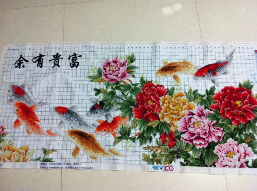 個人純手工十字繡 做工精美,平整,鯉魚栩栩如生,牡丹花逼真鮮艷。有慧眼識寶者前來鑒賞。有需要可表框出售!