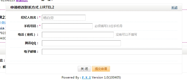 3、點(diǎn)擊“申請(qǐng)修改”,彈出如下的修改界面,修改后點(diǎn)擊提交申請(qǐng)按鈕即可,等待網(wǎng)站審核!